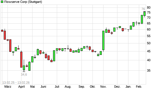 Mit dem Anstieg auf 72,50 EUR hat die Flowserve-Aktie (ISIN US34354P1057) am 12.02.2026 ein neues All-Time-High erreicht und damit den Kurs vom 11.02.2026 eingestellt.
