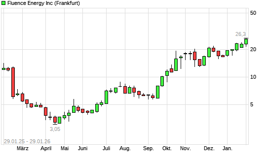 Mit dem Anstieg auf 25,70 EUR hat die Fluence Energy-Aktie (ISIN US34379V1035) am 28.01.2026 ein neues All-Time-High erreicht und damit den Kurs vom 27.01.2026 eingestellt.