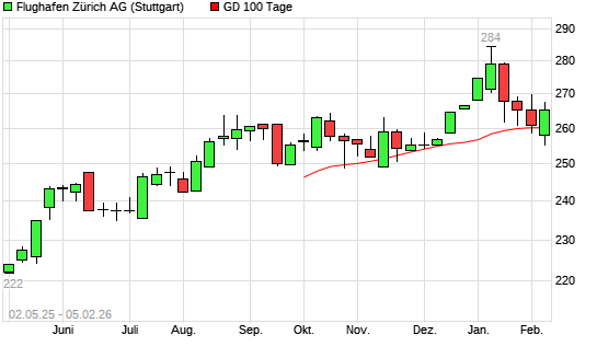 Mit dem Anstieg auf 259,80 EUR hat die Flughafen Zürich-Aktie am 04.02.2026 die 100-Tage-Linie nach oben gekreuzt.