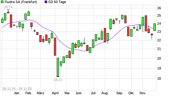 Mit dem Anstieg auf 23,40 EUR hat die Fluidra-Aktie am 25.11.2025 die 50-Tage-Linie nach oben gekreuzt.