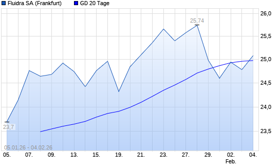 Mit dem Rücksetzer auf 24,78 EUR hat die Fluidra-Aktie am 03.02.2026 die 20-Tage-Linie nach unten gekreuzt.