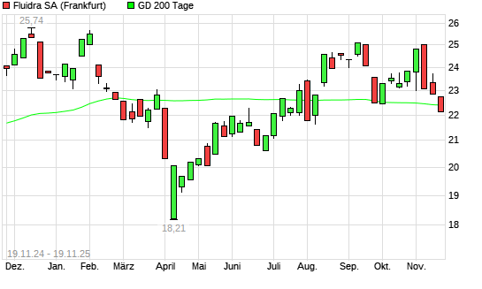 Mit dem Rücksetzer auf 22,22 EUR hat die Fluidra-Aktie am 18.11.2025 die 200-Tage-Linie nach unten gekreuzt.