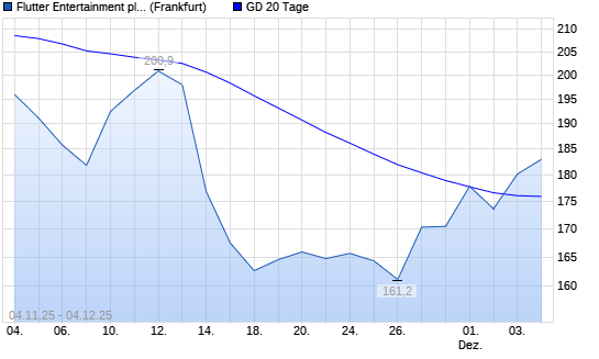 Mit dem Anstieg auf 180,20 EUR hat die Flutter Entertainment-Aktie am 03.12.2025 die 20-Tage-Linie nach oben gekreuzt.