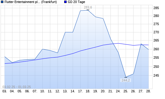 Mit dem Rücksetzer auf 259,70 EUR hat die Flutter Entertainment-Aktie am 28.02.2025 die 20-Tage-Linie nach unten gekreuzt.