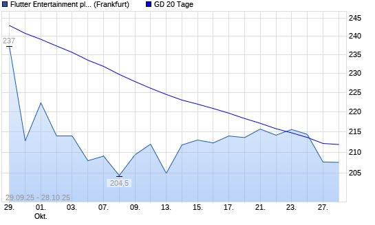 Mit dem Rücksetzer auf 207,70 EUR hat die Flutter Entertainment-Aktie am 27.10.2025 die 20-Tage-Linie nach unten gekreuzt.