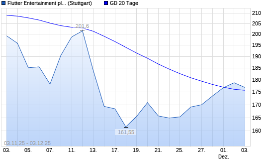 Mit dem Rücksetzer auf 173,70 EUR hat die Flutter Entertainment-Aktie am 02.12.2025 die 20-Tage-Linie nach unten gekreuzt.