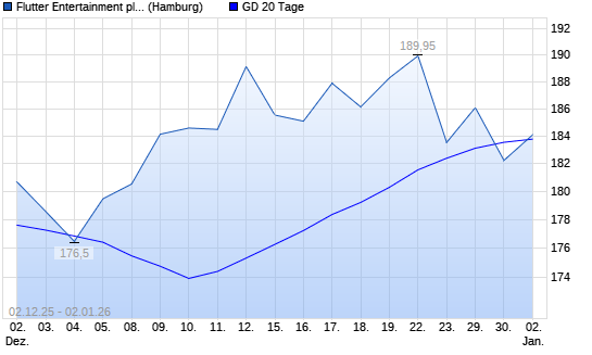 Mit dem Rücksetzer auf 186,20 EUR hat die Flutter Entertainment-Aktie am 01.01.2026 die 20-Tage-Linie nach unten gekreuzt.Die Flutter Entertainment-Aktie befindet sich seit ...weiterlesen