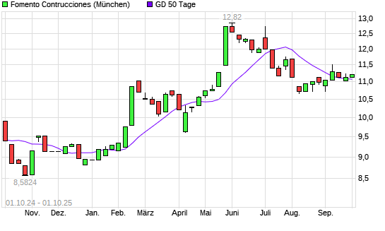 Mit dem Anstieg auf 11,20 EUR hat die Fomento Construcciones-Aktie am 30.09.2025 die 50-Tage-Linie nach oben gekreuzt.