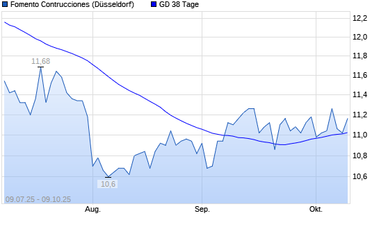 Mit dem Rücksetzer auf 11,10 EUR hat die Fomento Construcciones-Aktie am 08.10.2025 die 38-Tage-Linie nach unten gekreuzt.