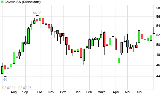 Mit dem Anstieg auf 53,35 EUR hat die Foncière des Régions-Aktie (ISIN FR0000064578) am 01.07.2025 ein neues 6-Monats-Hoch erreicht und damit den Kurs vom 30.05.2025 eingestellt.