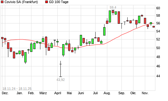 Mit dem Rücksetzer auf 55,25 EUR hat die Foncière des Régions-Aktie am 17.11.2025 die 100-Tage-Linie nach unten gekreuzt.