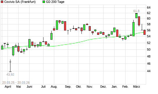 Mit dem Rücksetzer auf 55,05 EUR hat die Foncière des Régions-Aktie am 19.03.2026 die 200-Tage-Linie nach unten gekreuzt.