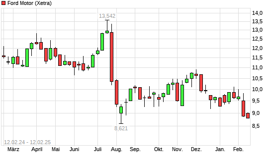 Mit dem Rücksetzer auf 8,80 EUR hat die Ford Motor-Aktie (ISIN US3453708600) am 11.02.2025 ein neues 3-Jahres-Tief erreicht und damit den Kurs vom 07.02.2025 eingestellt.