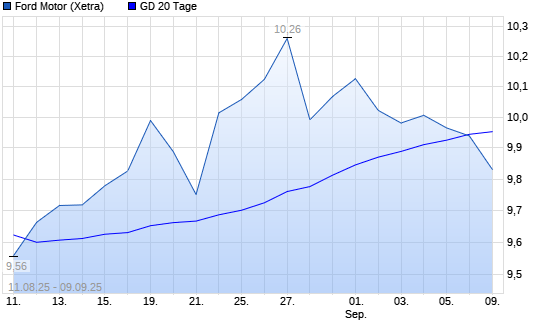Mit dem Rücksetzer auf 9,80 EUR hat die Ford Motor-Aktie am 08.09.2025 die 20-Tage-Linie nach unten gekreuzt.