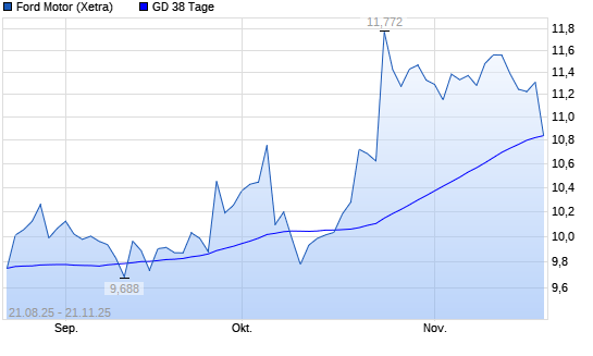 Mit dem Rücksetzer auf 10,70 EUR hat die Ford Motor-Aktie am 20.11.2025 die 38-Tage-Linie nach unten gekreuzt.