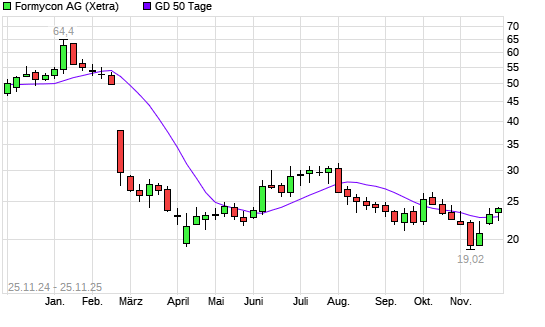 Mit dem Rücksetzer auf 22,50 EUR hat die Formycon-Aktie am 24.11.2025 die 50-Tage-Linie nach unten gekreuzt.