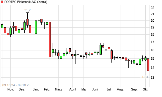 Mit dem Rücksetzer auf 13,60 EUR hat die Fortec Elektronik-Aktie (ISIN DE0005774103) am 08.10.2025 ein neues 5-Jahres-Tief erreicht und damit den Kurs vom 21.08.2025 eingestellt.