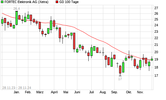 Mit dem Anstieg auf 19,40 EUR hat die Fortec Elektronik-Aktie am 27.11.2024 die 100-Tage-Linie nach oben gekreuzt.