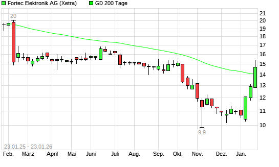 Mit dem Anstieg auf 14,45 EUR hat die Fortec Elektronik-Aktie am 22.01.2026 die 200-Tage-Linie nach oben gekreuzt.