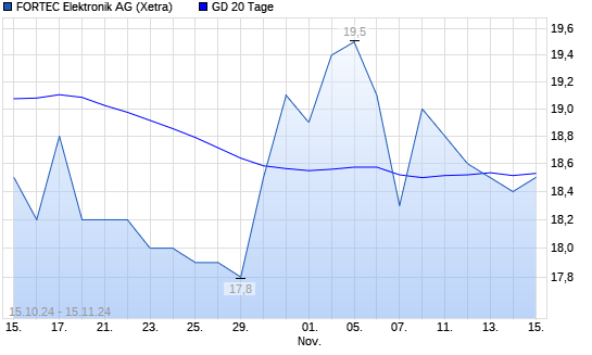 Mit dem Rücksetzer auf 18,20 EUR hat die Fortec Elektronik-Aktie am 14.11.2024 die 20-Tage-Linie nach unten gekreuzt.