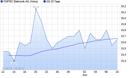 Mit dem Rücksetzer auf 15,45 EUR hat die Fortec Elektronik-Aktie am 09.06.2025 die 20-Tage-Linie nach unten gekreuzt.