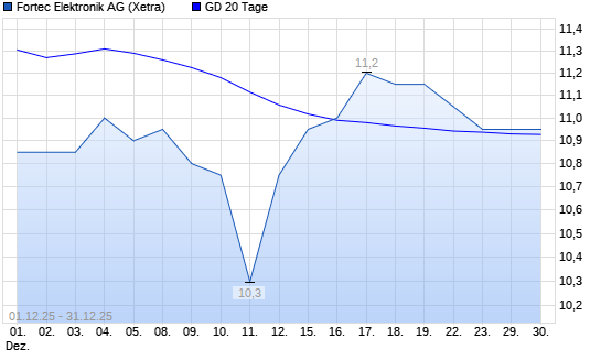 Mit dem Rücksetzer auf 10,60 EUR hat die Fortec Elektronik-Aktie am 30.12.2025 die 20-Tage-Linie nach unten gekreuzt.