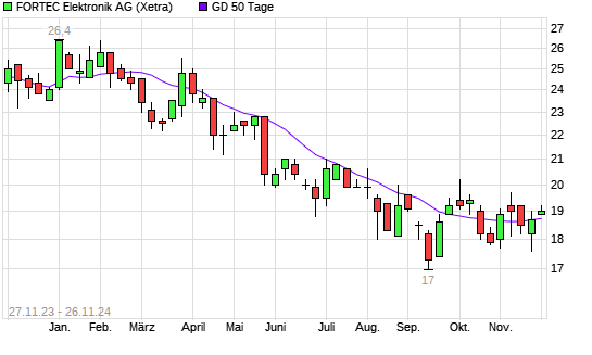 Mit dem Rücksetzer auf 18,40 EUR hat die Fortec Elektronik-Aktie am 25.11.2024 die 50-Tage-Linie nach unten gekreuzt.