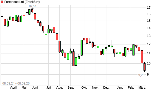 Mit dem Rücksetzer auf 9,35 EUR hat die Fortescue Metals Group-Aktie (ISIN AU000000FMG4) am 07.03.2025 ein neues 3-Jahres-Tief erreicht und damit den Kurs vom 06.03.2025 eingestellt.
