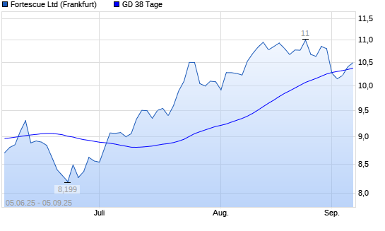 Mit dem Anstieg auf 10,41 EUR hat die Fortescue Metals Group-Aktie am 04.09.2025 die 38-Tage-Linie nach oben gekreuzt.