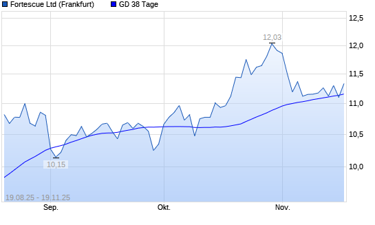 Mit dem Rücksetzer auf 11,10 EUR hat die Fortescue Metals Group-Aktie am 18.11.2025 die 38-Tage-Linie nach unten gekreuzt.