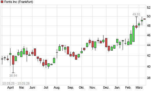 Mit dem Anstieg auf 49,39 EUR hat die Fortis-Aktie (ISIN CA3495531079) am 09.03.2026 ein neues All-Time-High erreicht und damit den Kurs vom 05.03.2026 eingestellt.