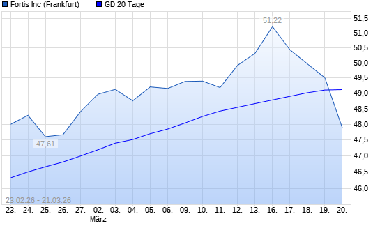 Mit dem Rücksetzer auf 47,89 EUR hat die Fortis-Aktie am 20.03.2026 die 20-Tage-Linie nach unten gekreuzt.