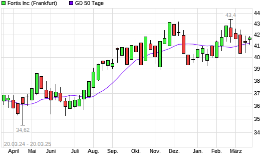 Mit dem Rücksetzer auf 41,14 EUR hat die Fortis-Aktie am 19.03.2025 die 50-Tage-Linie nach unten gekreuzt.