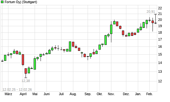 Mit dem Anstieg auf 20,48 EUR hat die Fortum-Aktie (ISIN FI0009007132) am 11.02.2026 ein neues 3-Jahres-Hoch erreicht und damit den Kurs vom 28.01.2026 eingestellt.