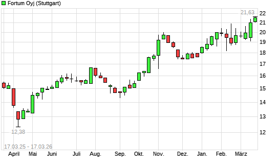 Mit dem Anstieg auf 21,66 EUR hat die Fortum-Aktie (ISIN FI0009007132) am 16.03.2026 ein neues 3-Jahres-Hoch erreicht und damit den Kurs vom 13.03.2026 eingestellt.