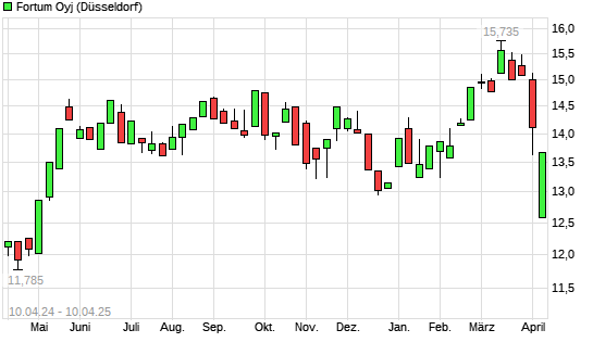Mit dem Rücksetzer auf 12,59 EUR hat die Fortum-Aktie (ISIN FI0009007132) am 09.04.2025 ein neues 6-Monats-Tief erreicht und damit den Kurs vom 07.04.2025 eingestellt.