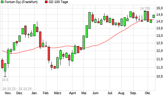Mit dem Anstieg auf 14,27 EUR hat die Fortum-Aktie am 14.10.2024 die 100-Tage-Linie nach oben gekreuzt.