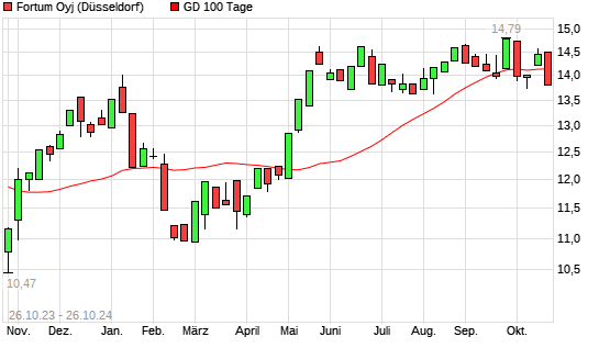 Mit dem Anstieg auf 14,19 EUR hat die Fortum-Aktie am 25.10.2024 die 100-Tage-Linie nach oben gekreuzt.