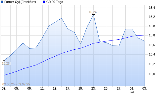 Mit dem Rücksetzer auf 15,74 EUR hat die Fortum-Aktie am 02.07.2025 die 20-Tage-Linie nach unten gekreuzt.