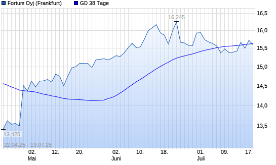 Mit dem Rücksetzer auf 15,60 EUR hat die Fortum-Aktie am 18.07.2025 die 38-Tage-Linie nach unten gekreuzt.