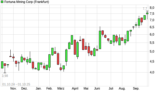 Mit dem Anstieg auf 7,64 EUR hat die Fortuna Silver Mines-Aktie (ISIN CA3499421020) am 30.09.2025 ein neues 3-Jahres-Hoch erreicht und damit den Kurs vom 29.09.2025 eingestellt.