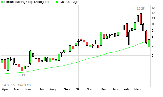 Mit dem Anstieg auf 7,92 EUR hat die Fortuna Silver Mines-Aktie am 23.03.2026 die 200-Tage-Linie nach oben gekreuzt.