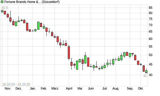 Mit dem Rücksetzer auf 41,60 EUR hat die Fortune Brands Home & Security-Aktie (ISIN US34964C1062) am 14.10.2025 ein neues 5-Jahres-Tief erreicht und damit den Kurs vom 09.04.2025 eingestellt.