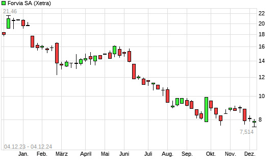 Mit dem Rücksetzer auf 7,43 EUR hat die Forvia-Aktie (ISIN FR0000121147) am 03.12.2024 ein neues 10-Jahres-Tief erreicht und damit den Kurs vom 17.10.2024 eingestellt.