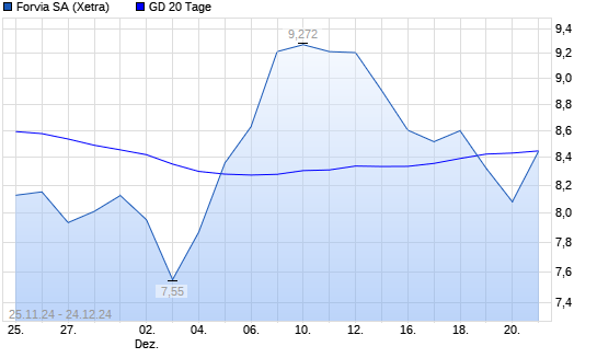 Mit dem Anstieg auf 8,38 EUR hat die Forvia-Aktie am 23.12.2024 die 20-Tage-Linie nach oben gekreuzt.