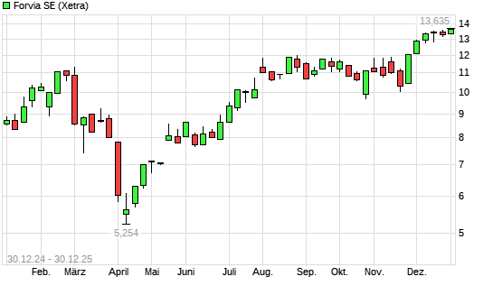 Mit dem Anstieg auf 13,42 EUR hat die Forvia-Aktie (ISIN FR0000121147) am 29.12.2025 ein neues 12-Monats-Hoch erreicht und damit den Kurs vom 08.12.2025 eingestellt.Die ...weiterlesen