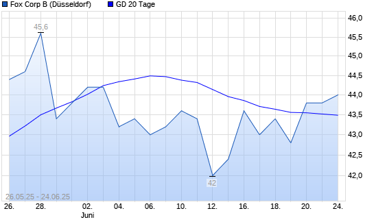 Mit dem Anstieg auf 43,60 EUR hat die Fox Corporation-Aktie am 23.06.2025 die 20-Tage-Linie nach oben gekreuzt.