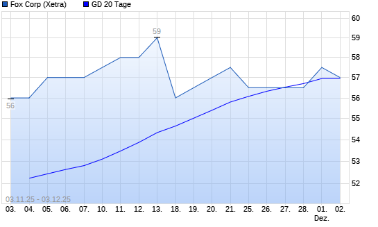 Mit dem Anstieg auf 57,00 EUR hat die Fox Corporation-Aktie am 02.12.2025 die 20-Tage-Linie nach oben gekreuzt.
