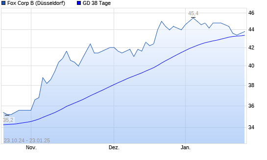 Mit dem Rücksetzer auf 43,40 EUR hat die Fox Corporation-Aktie am 22.01.2025 die 38-Tage-Linie nach unten gekreuzt.