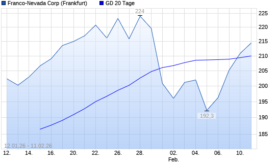 Mit dem Anstieg auf 210,90 EUR hat die Franco-Nevada-Aktie am 10.02.2026 die 20-Tage-Linie nach oben gekreuzt.